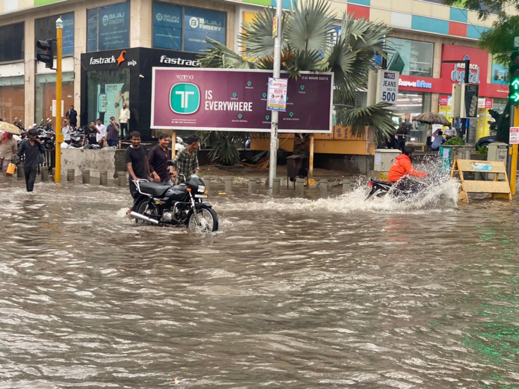 The city is still experiencing heavy rain, which has submerged underpass roads. Continuous rains lashed south and central Gujarat, forcing around 1,500 people to flee low-lying areas.