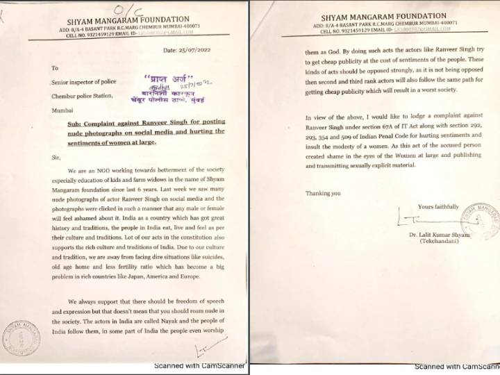 Recently, the actor posed naked for a magazine cover and shared several photos on his official Instagram account and Case filed against Ranveer Singh because of this.