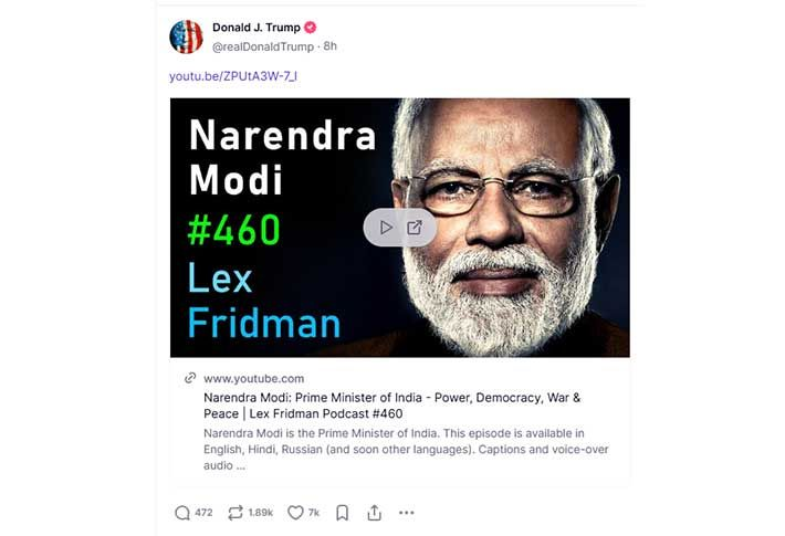 Donald Trump shared PM Modi podcast video on social media
