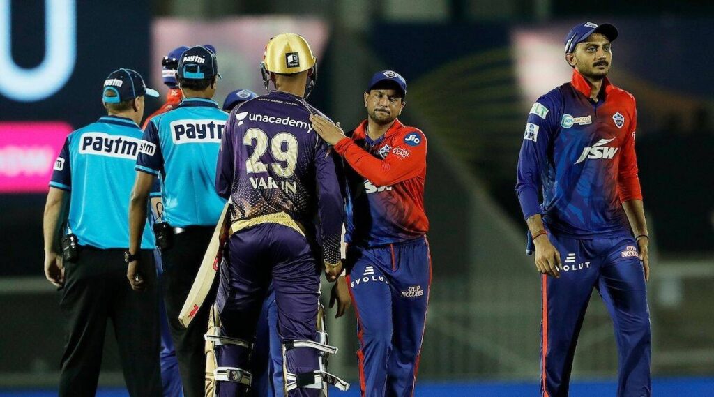 KKR vs. DC Live Score: Four to complete the over