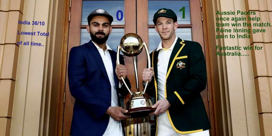 India vs Australia test series 2020: Australia wins the first battle of 4 test matches. Indian team collapse in the second inning for 36runs.