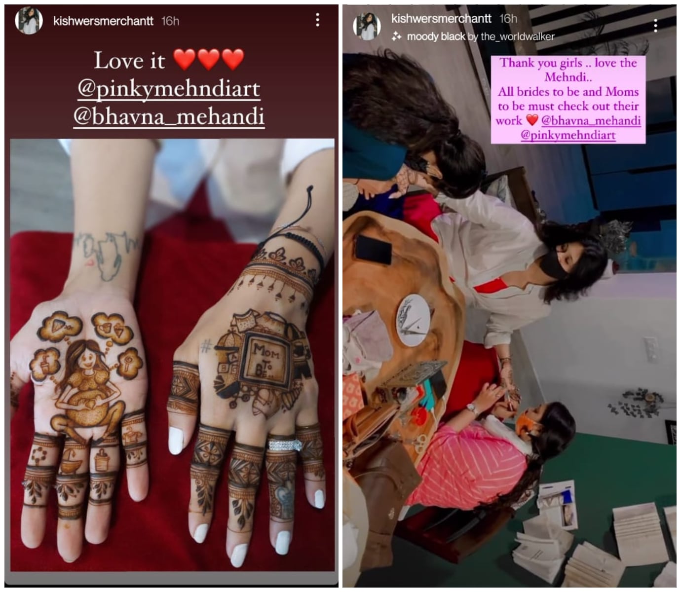 Kishwer Merchant’s Mehendi design had an infant shower theme.