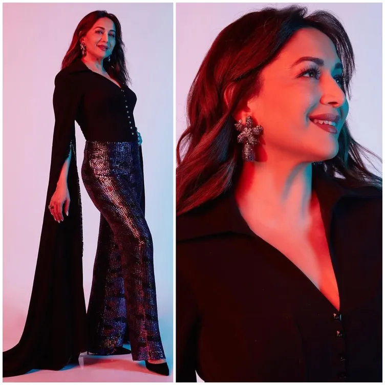 Madhuri Dixit dazzled in Manish Malhotra’s sequin flared pants and cape-sleeved shirt; Yay or Nay?