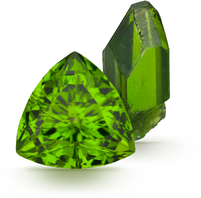 Peridot: Peridot is the birthstone for the month of August. This stone belongs to the green variety of the Olivine Group of minerals, formally called ‘Olivian’. Olivine is a group of minerals that includes Forsterite, Liebenbergite, Fayalite, Laihunite and Tephroite and it is not an individual mineral on its own. The name ‘Peridot’ has been adopted for many years to avoid confusion with demantoid Garnets, Topaz, Emeralds. Today Peridot is appreciated on its own merits as the most affordable untreated green stone in calibrated sizes, and exquisite large richly colored gem that can be a focus on custom jewelry.