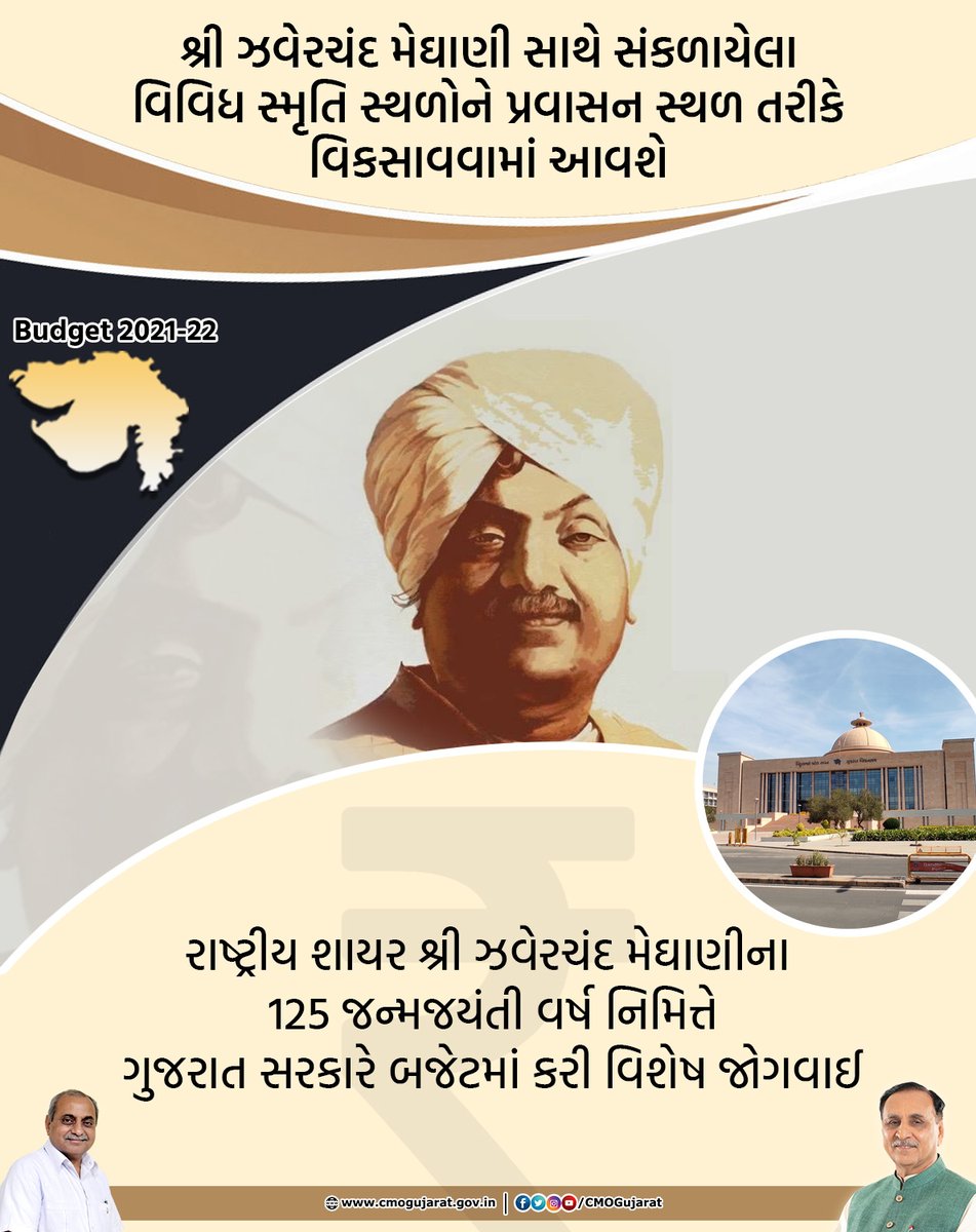 In addition, the new building of Gujarat Sahitya Akademi is to be constructed in Gandhinagar. This building will also be named Meghani.