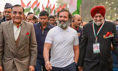 Former army chief Gen Kapoor and other veterans with Rahul during Bharat Jodo