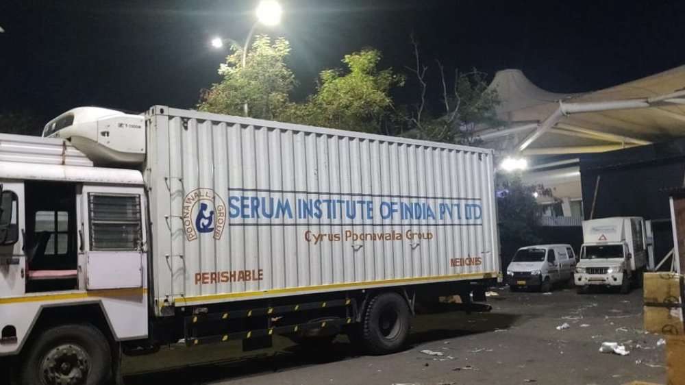 The first shots of the Covishield vaccine were sent to Lohegaon Airport early Tuesday morning by three vehicles from SII’s Pune campus.