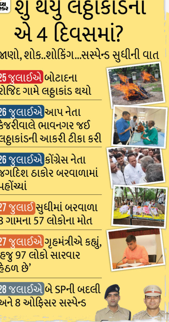 So far, 57 people have died in the Lathtakand. After this, now the government has come into action. Home Minister Harsh Sanghvi has taken strict action in this matter, in which Botad SP Karanraj Vaghela and Ahmedabad Rural SP Virendra Singh Yadav have also been transferred.